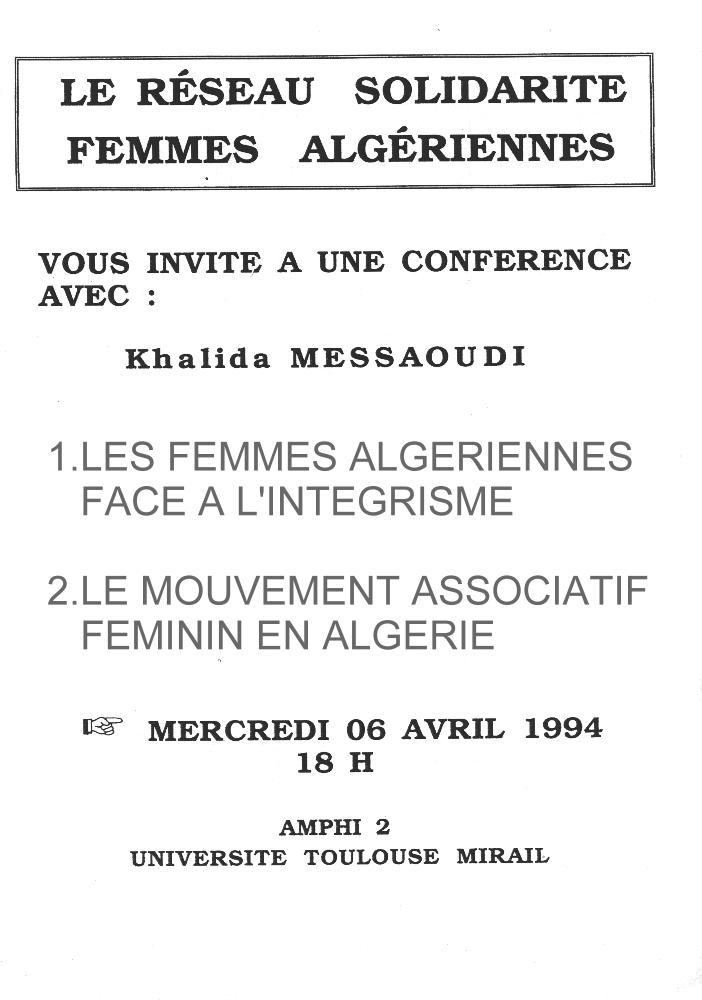 Conférence de Khalida Messaoudi le 6 avril 1994 au Mirail.
