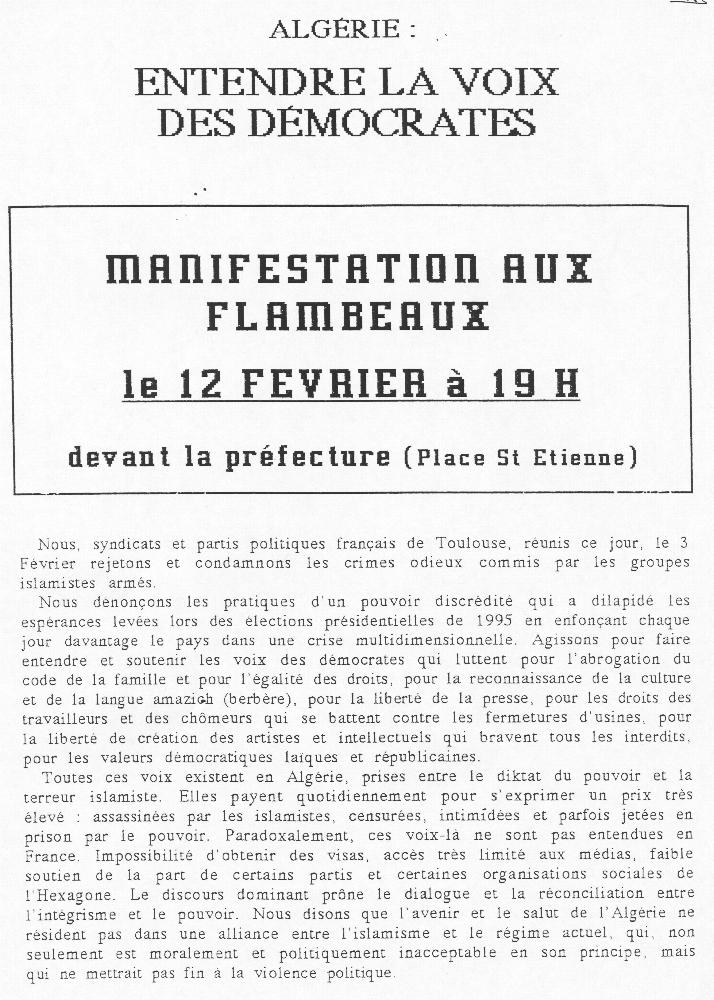 Appel des organisateurs de la manifestation du 12 février 1997 intitulé "Entendre la voix des démocrates". (recto)