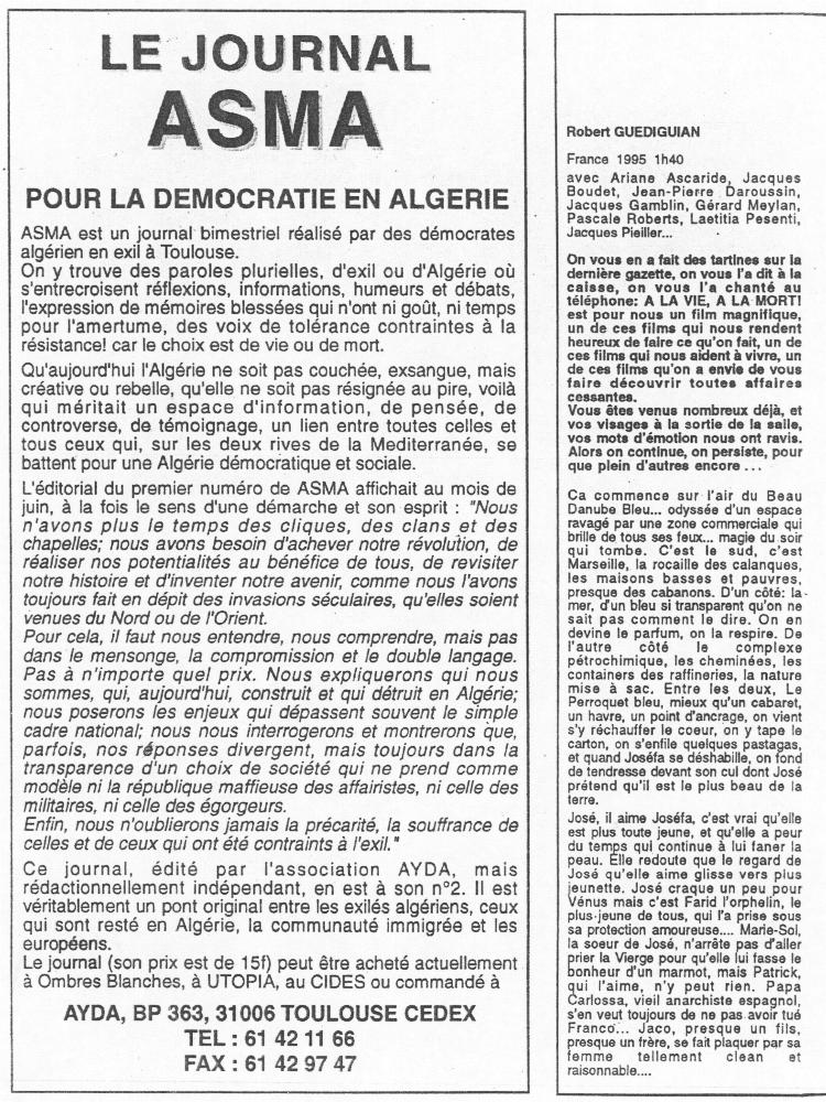 Le journal Asma, décembre 1995.
